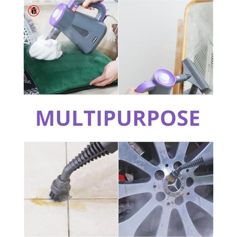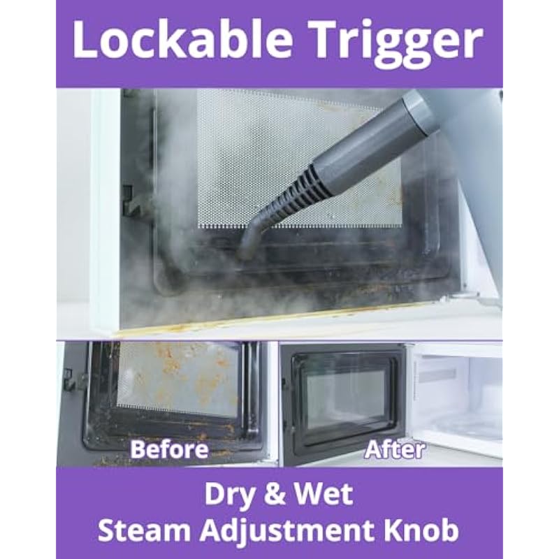 - [Efficient Operation]: Generates steam in just 10 seconds and The water tank remains non-pressurized and unheated during operation, allowing for immediate refills without waiting for the unit to cool down. Enjoy uninterrupted cleaning sessions—refill anytime safely and conveniently, saving time and effort. It is the ideal choice for cleaning sofa, mattress, spot detail, fabric surface, kitchen, bathroom, bed, window, curtain, shower, oven, stove, grill, and removing wallpaper from wall.