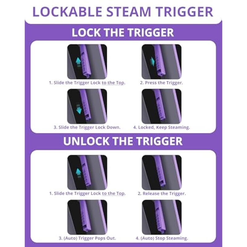 | Special Feature | 750mL (25oz) Large Tank, Dry/Wet Steam Control, Fast 10-Sec Heat-Up, Lockable Steam Trigger – No Need to Hold it, No Cooling-Refill Anytime |
