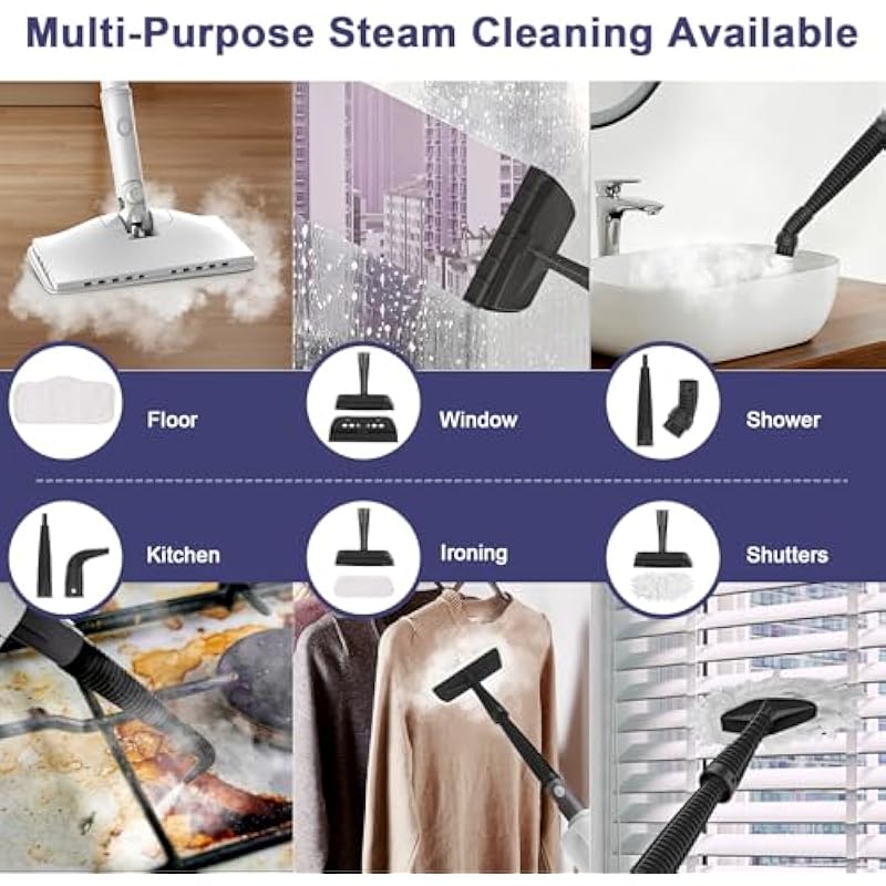 - 【Multi-Functional and Replacement Heads】 ✅The steam mop with attachments can help you clean hardwood, laminate, marble, tile and other materials, while the 5 different replacement heads can also help you clean water stains on bathroom windows, grease stains on kitchen stoves, desktop dirt and even basic ironing can be easily done. The steam mop is a good helper for your home cleaning!