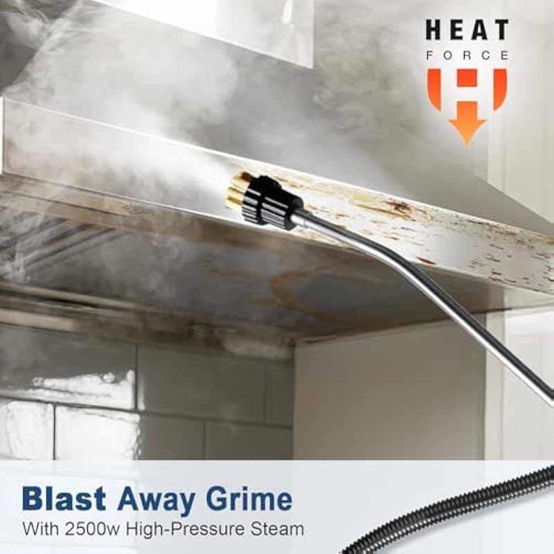 - Hot, Hot, Hot! –Powered with 2500W power and 3.5 bar steam pressure, this powerful steam cleaner for home blasts away tough messes like greasy stovetops, water stains, and tile grout with 230°F steam. The copper nozzle ensures smooth, precise steam for a deep clean. Easy to use steam cleaner get faster, keep your home spotless with minimal effort