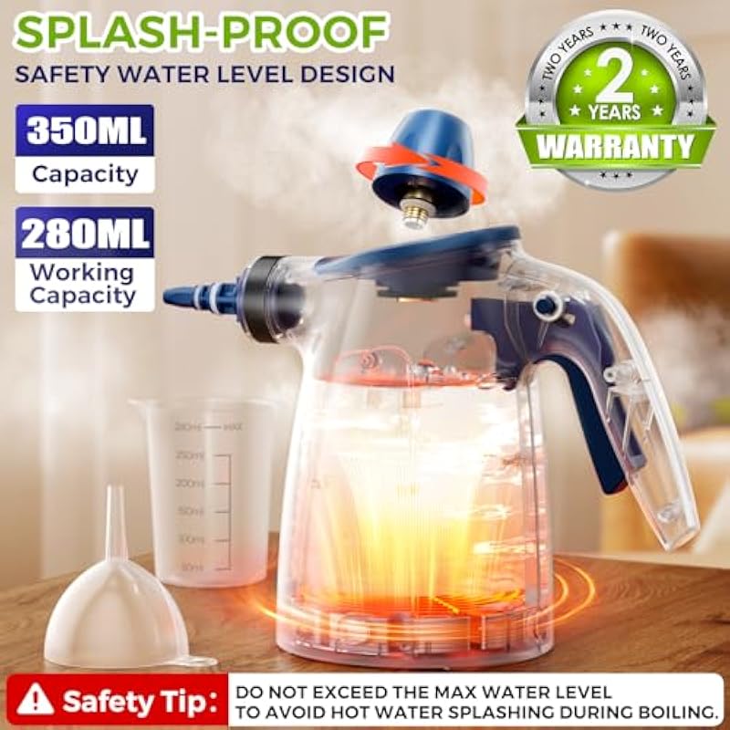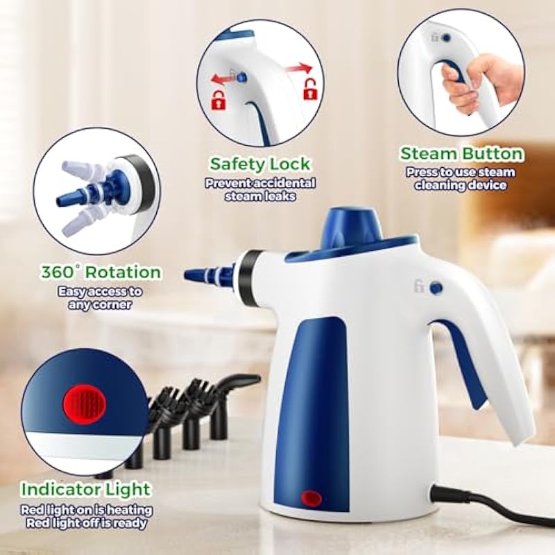 - 【Enhanced Safety & Design】This steamer for cleaning features automatic power-off when water evaporates for added safety. Its housing is made of heat-resistant PP material to provide better insulation and reduce surface heat. The core boiler features a durable, thick-walled die-cast aluminum construction for high-pressure resistance and extended durability. Weighing only 2.6 lbs and fitted with a 9.8 ft power cord, this portable steam cleaner ensures convenient cleaning throughout your home.