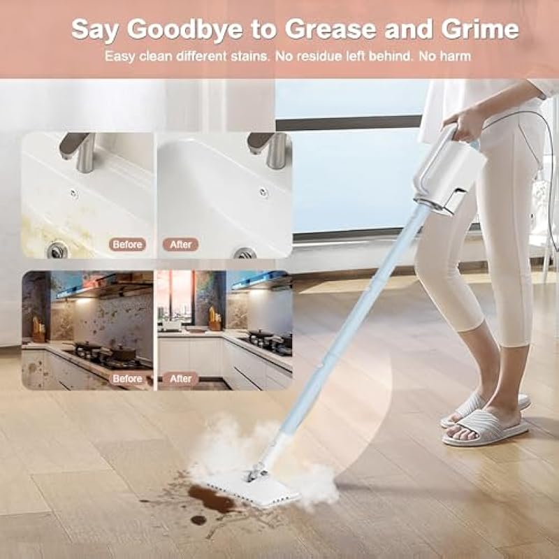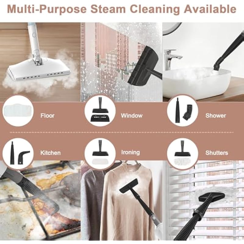 - đ§ź ăFit Multi-Surface and Multi-Purpose Useă Steam mop with attachments includes 2 machine-washable pads and 7 attachments for floors (hardwood, laminate, tile, marble), windows, showers, kitchens, and even clothing care. Dirt and oil grime, water stains cleaning is not the hard thing again!