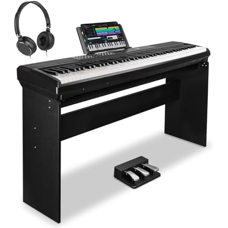 STRICH 88 Key Digital Piano Full Size Electric Keyboard with Semi-Weighted Sensitive Keys, Portable Electric Piano Set for Beginner, Bundle with Sustain Pedal, Headphones, Music Rest, SEP-150S