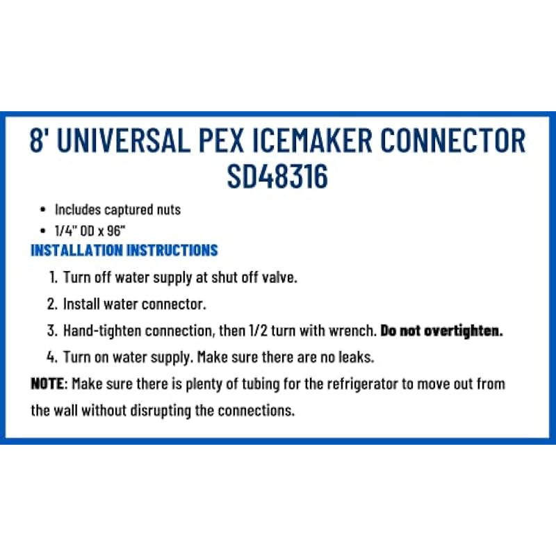 Supplying Demand 48316 8 Feet PEX Ice Maker Water Connector with Captured Brass Nuts 1/8 Inch ID 1/4 Inch OD