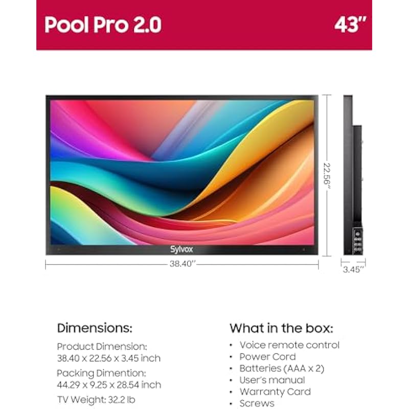 SYLVOX Outdoor TV, 43-Inch Waterproof Smart TV, 2000 nits Full Sun TV, 4K, Dolby Atmos, Waterproof Soundbar, & Adjustable Wall Mount