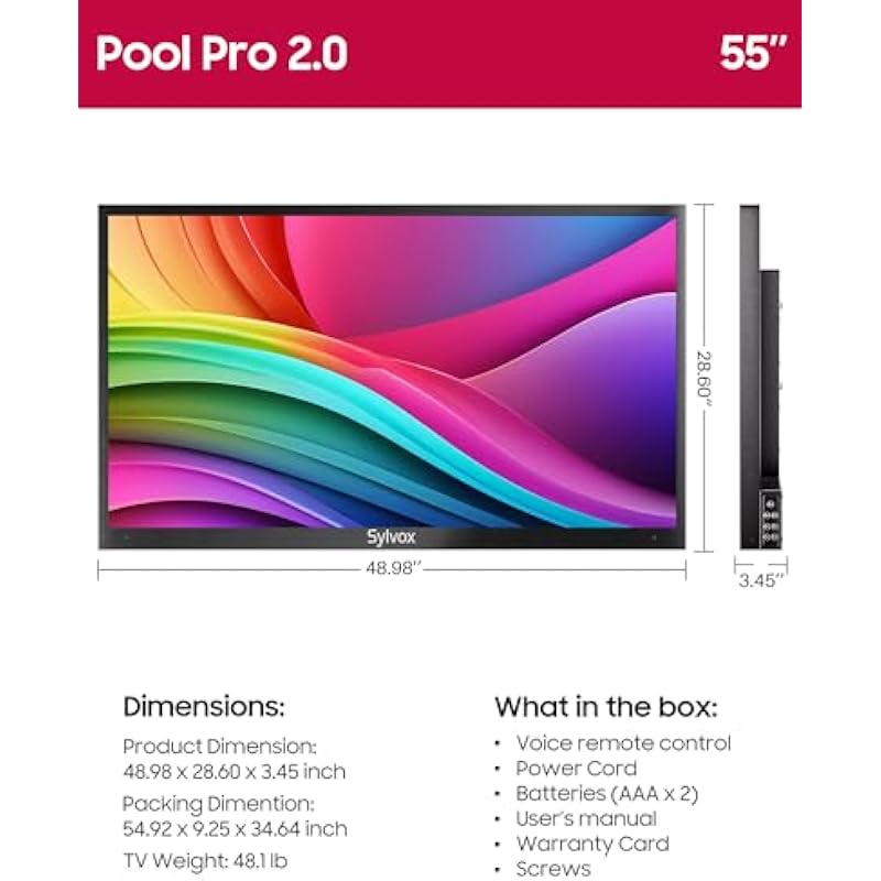 SYLVOX Outdoor TV, 55-Inch Waterproof Smart TV, 2000 nits Full Sun TV, 4K, Dolby Atmos, Waterproof Soundbar, & Adjustable Wall Mount