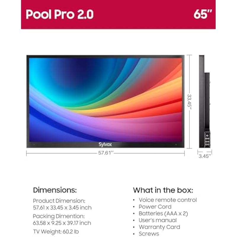 SYLVOX Outdoor TV, 65-Inch Waterproof Smart TV, 2000 nits Full Sun TV, 4K, Dolby Atmos, Waterproof Soundbar, & Adjustable Wall Mount