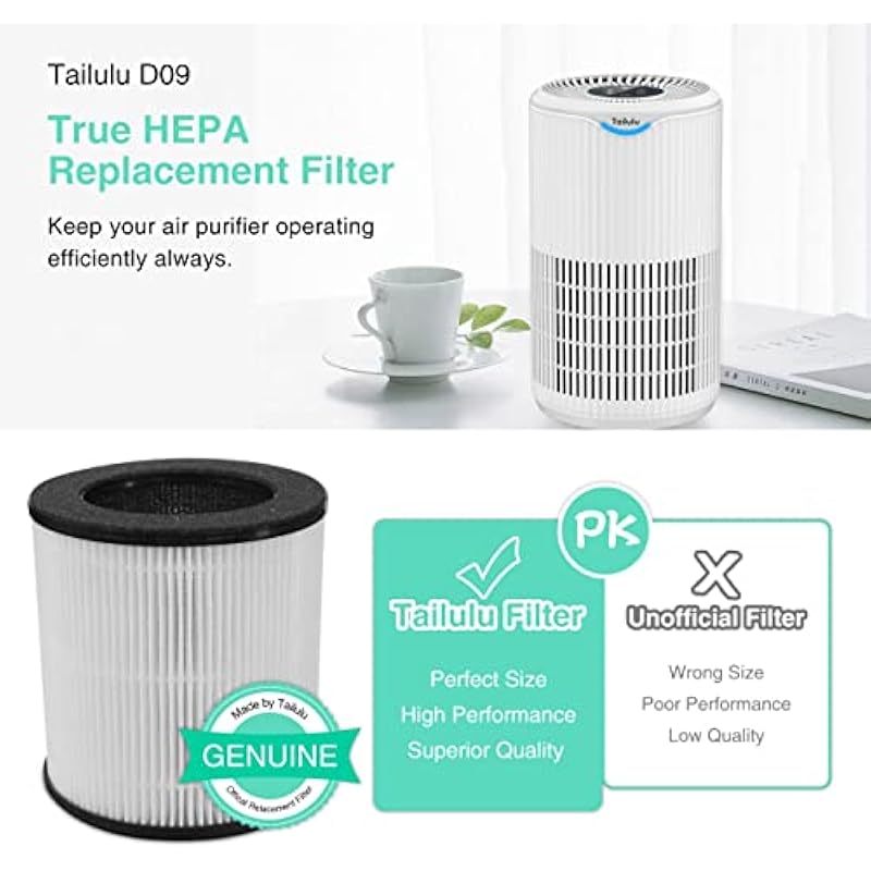 - [D09 Replacement Filter] Exclusively designed for Tailulu D09 air purifier to maintain its peak performance. With cost-effective price to save much cost for your all-year-round air cleaning need. It is recommended to replace filters every 3-6 months depending on the usage and air quality.