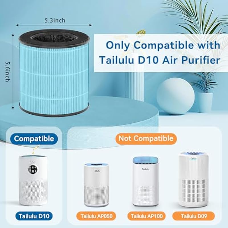 - [Tailulu D10 Replacement Filter] Exclusively designed for Tailulu D10 air purifier to maintain its peak performance. With cost-effective price to save much cost for your all-year-round air cleaning need. It is recommended to replace filters every 3-6 months depending on the usage and air quality.