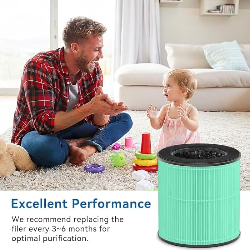 - [Better Air, Better Life] The replacement filter features 3 in 1 filtration System: Pre-filter, H13 true HEPA filter, and Charcoal filtration system work together to purify 99.99% of 0.3-micron particles from dust, pollen, PM 2.5, pet dander, smoke, cooking smell, hair and odor. Effectively improve indoor air quality and create a healthy environment.