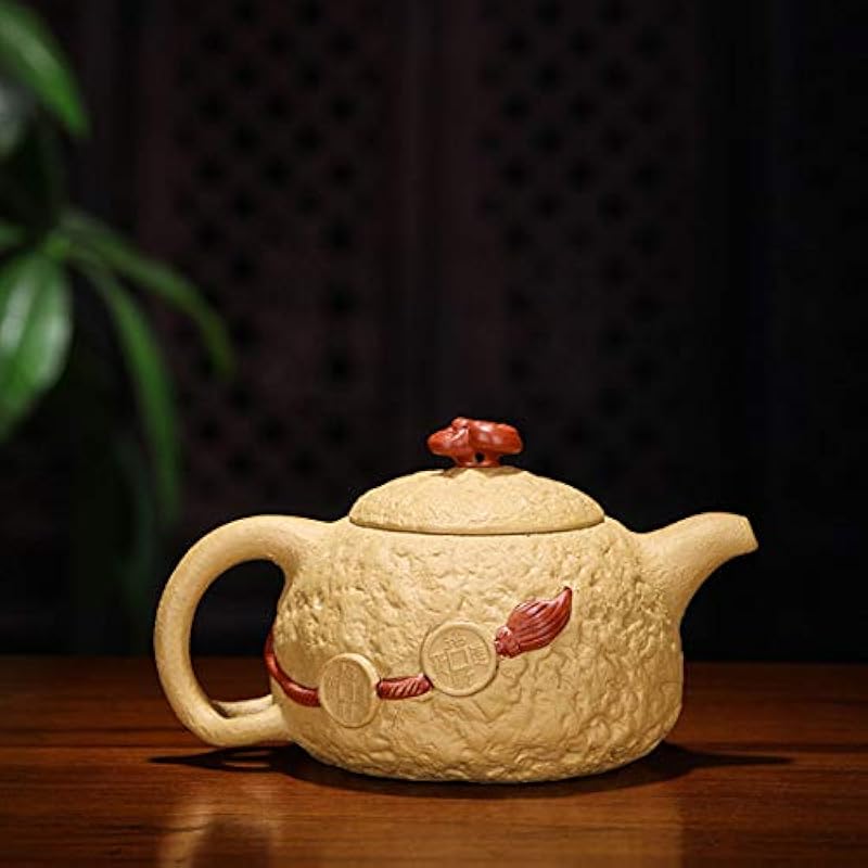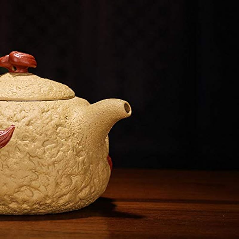 Teapot Chinese Zisha Clay Tea Pot Ceramics Handmade Gongchun Lucky Money Toad Tea Pot Yellow Golden Duan Mud Kungfu Kettle (Fengshui-Wealth spittor)