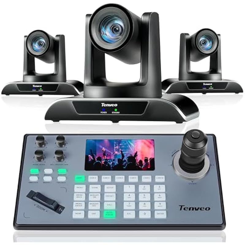 - 🌟Tenveo PTZ Camera Bundle INCLUDES: Tenveo HDMI/USB3.0/LAN(PoE) PTZ Camera 20X AI Auto Tracking IP Live Streaming Camera(𝐕𝐇𝐃𝟐𝟎𝐇-3pcs) and PTZ Camera Joystick Controller – 5” LCD Screen Real-time Preview 4D Joystick Conference Control Keyboard(𝐊𝐁𝟐𝟎𝟎𝐏𝐑𝐎), which is ideal for Church Live Service, Video Conference, School, Hospital, Wedding, Live Streaming, Broadcast, Online Education, Product Launch, Video Production and House of Worship.