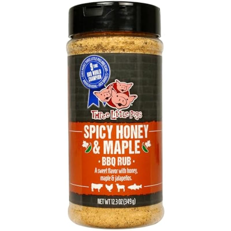 Three Little Pigs – Spicy Honey & Maple BBQ Rub – Sweet flavor with honey, maple & jalapenos – 12.3 oz