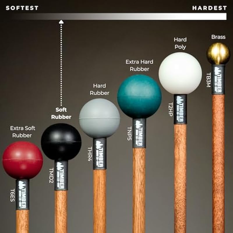 - SOFT RUBBER MALLETS: the Timber Drum Co. Soft Rubber Mallets produce a full and resonant sound with some give and a gentle attack; ideal for drawing out a pleasant tone with reduced sharpness when striking your instrument