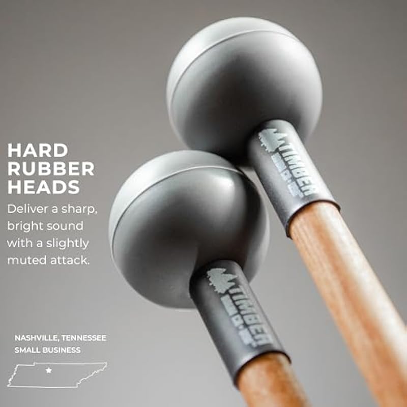 - HARD RUBBER MALLETS: the Timber Drum Co. Hard Rubber Mallets give you a sharper, brighter sound than soft rubber but still with a slightly muted attack you would expect from rubber; they draw out a pleasant tone with a bit more attack and volume