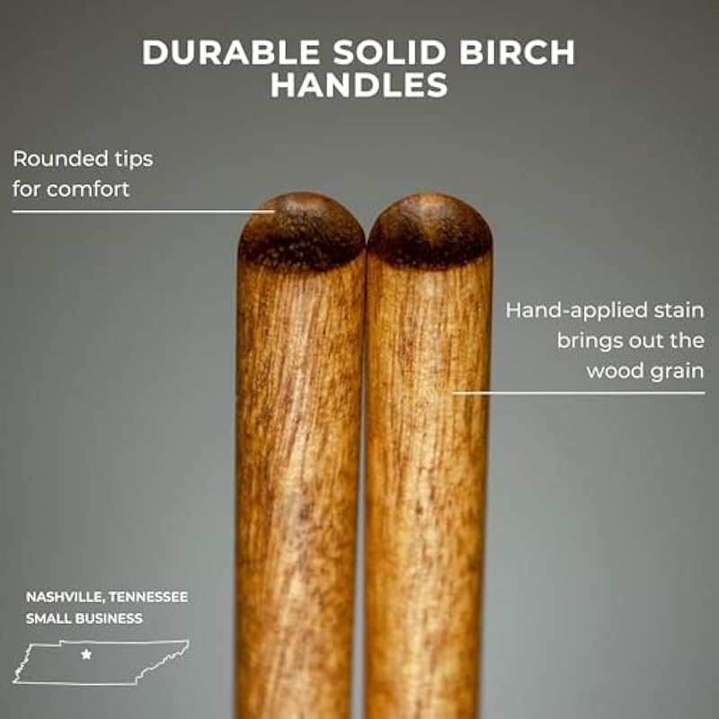 - SOLID BIRCH HANDLES: smooth and well-balanced with rounded tips for comfort; the wood is hand-stained in our shop to bring out the natural grain for a high-end look
