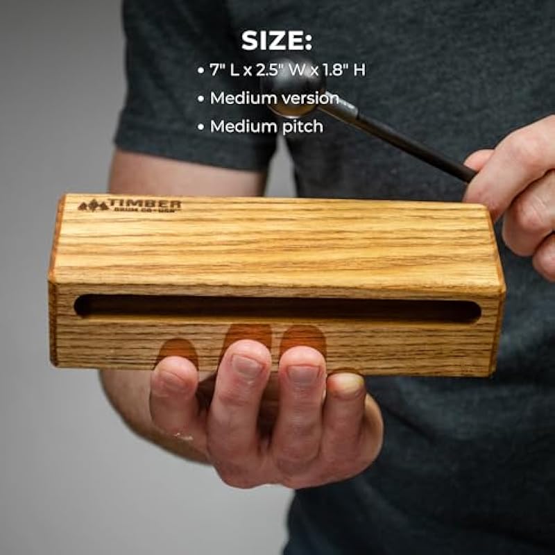 - MADE IN USA FROM SOLID HARDWOOD: the Timber Drum Co. wood block is constructed from a solid piece of real Tennessee hardwood to give it an organic, warm and woody sound that plastic blocks can never fully replicate