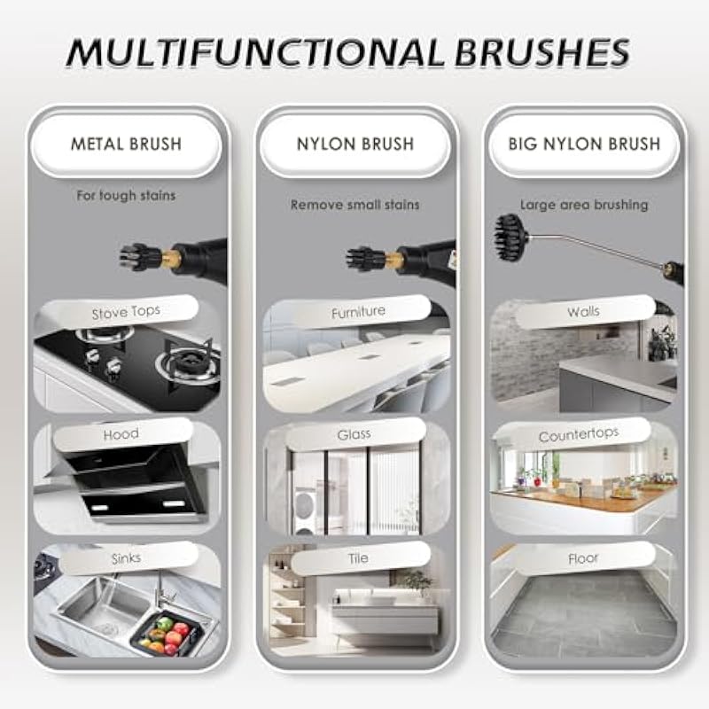 Timing Steam Cleaner, Extra 2 Nylon Brush, 2 Brass Brush
