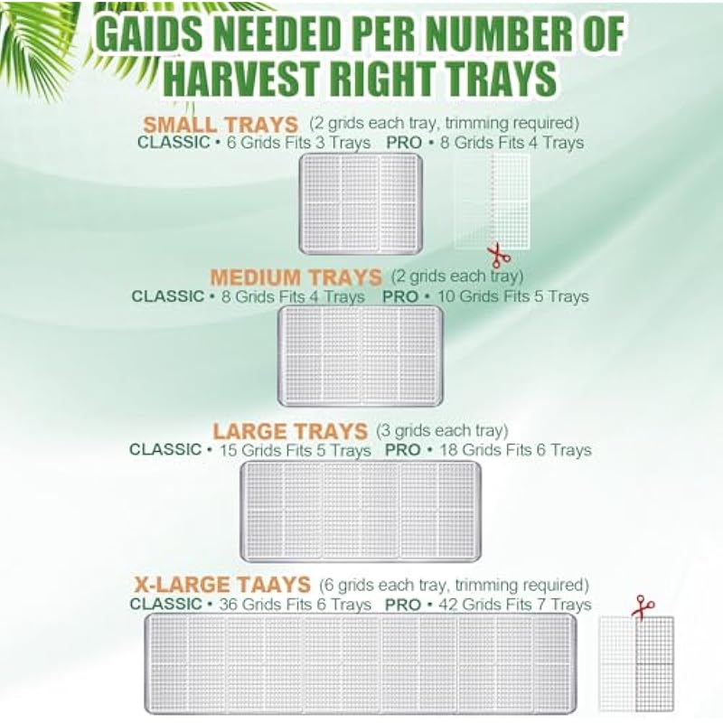 - Package Quantity: this set comes with a generous package quantity of 12 Harvest Right trays racks; The trays feature a handy small grid design, exposing more food surface area to air, which consequently reduces the drying time