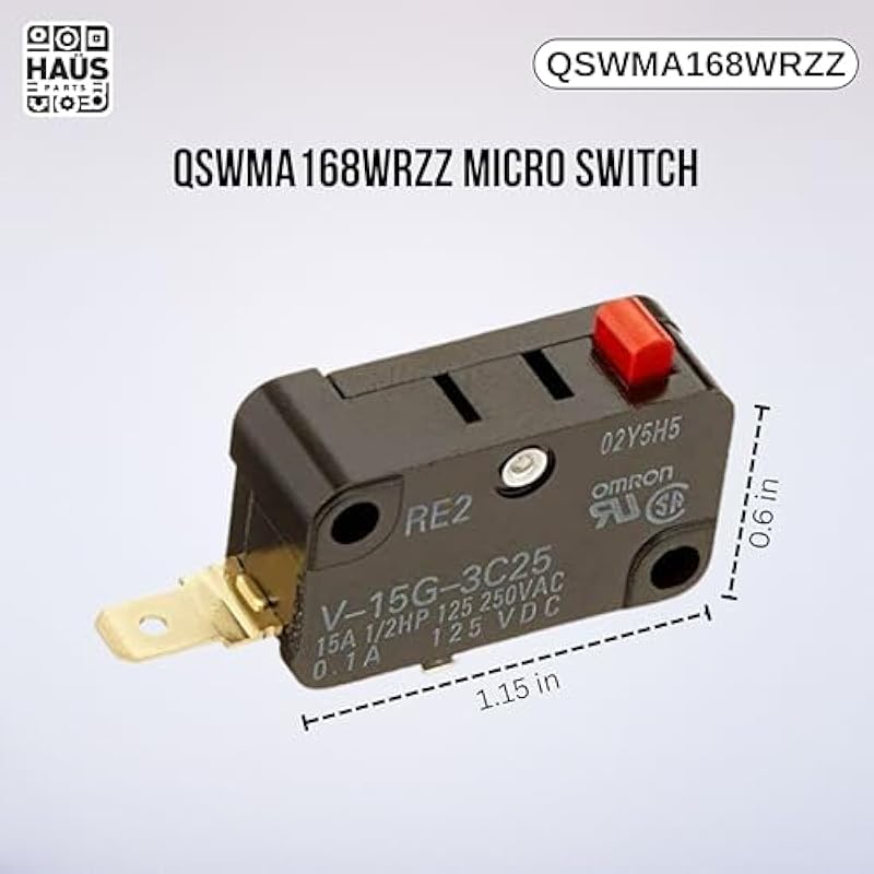 - color of the product may vary, Fixes problems: 1. Will not Start 2. Noisy 3. No Heat How its work: QSWMA168WRZZ Micro Switch – Door Interlock is the button that protrudes from the switch’s housing. In a door interlock application, the actuator is usually designed to come into contact with the door when it is closed. The spring is responsible for providing the “snap-action” effect. It holds the actuator in its normal position, and when an external force (such as the door closing) is applied to th