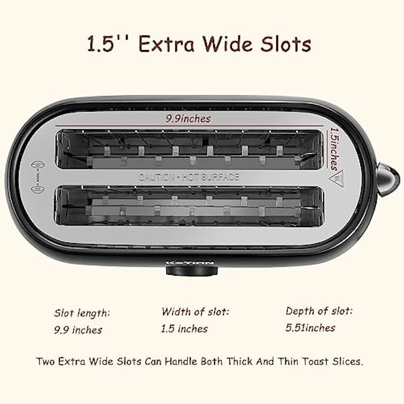 - Make More Toasts: With this long slot toaster, you can bake 4 slices of toast at a time, or longer 2 slices of bread, such as sandwich bread, handmade bread, rectangular toast, etc. And one 4 slice compact toaster saves more space in the kitchen