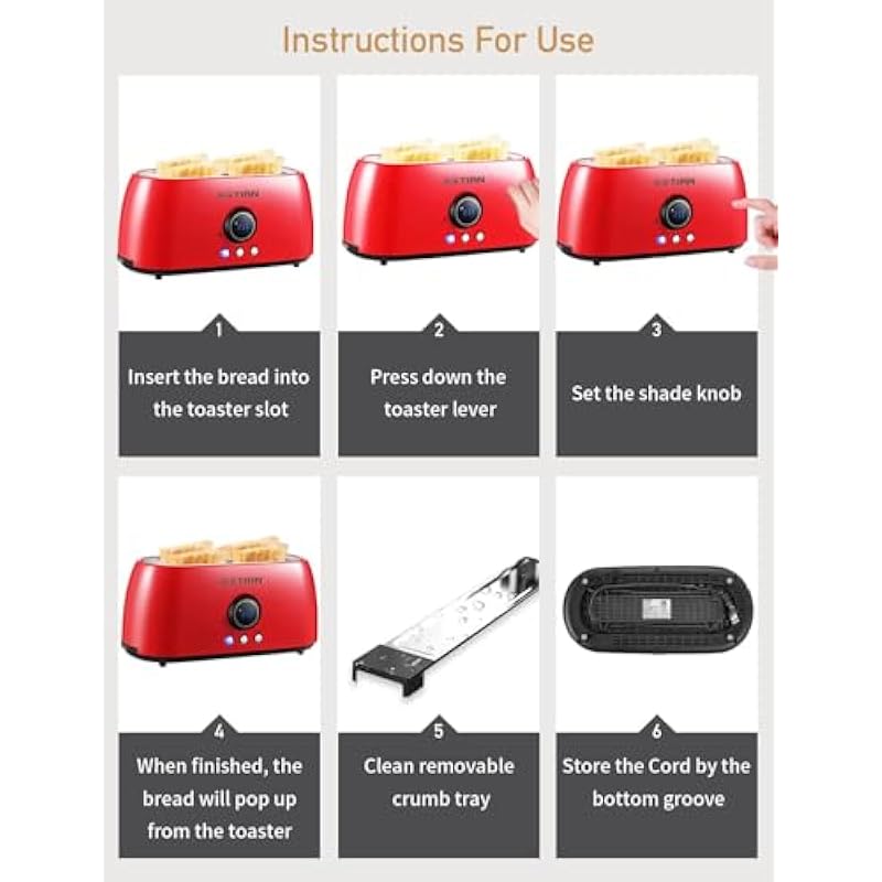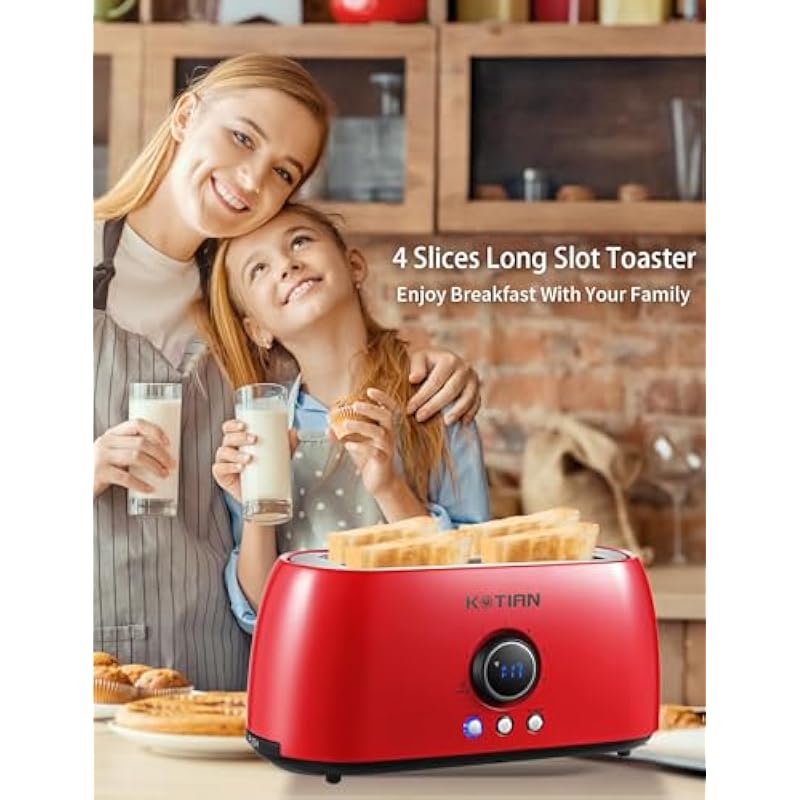 - Digital Countdown Timer: This 4 slice red toaster has a large LED timer display, which can accurately and clearly show you the remaining toasting time. Save your time to do other things, when the toast is finished, the toaster will pop up the lever to pop out the toast