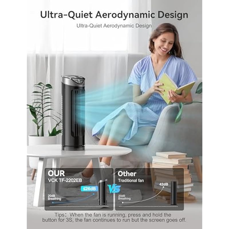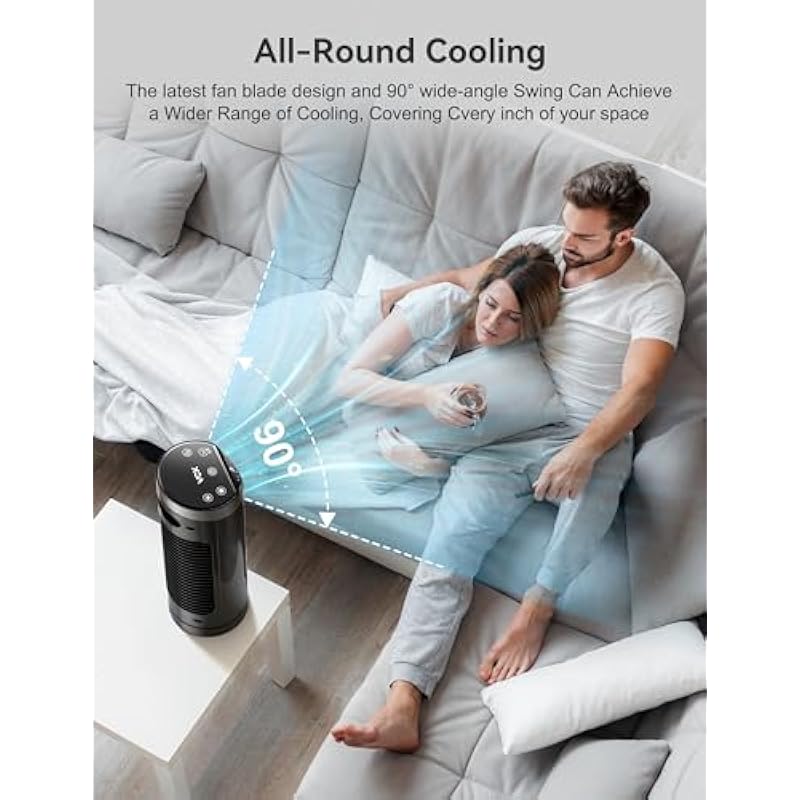 - 🔇 Ultra-Quiet Operation:Designed for whisper-quiet cooling, this oscillating tower fan operates at just 26 dB on the highest setting. Enjoy a cool breeze without disruptive noise, perfect for offices, bedrooms, and study spaces.