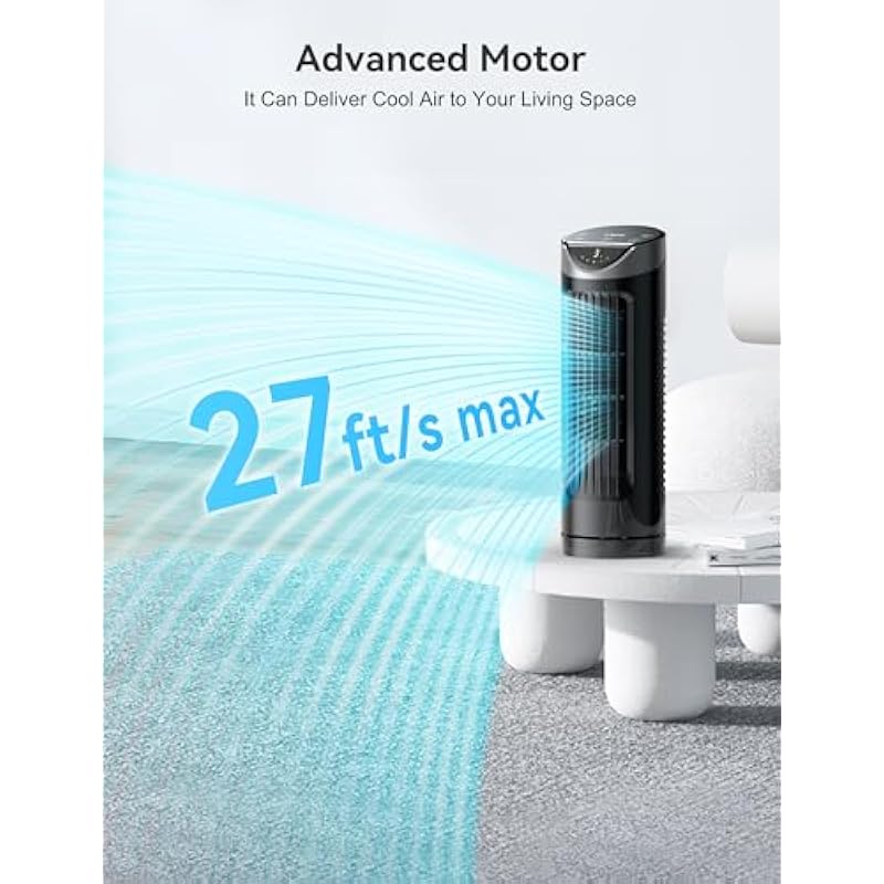 - 🌬️ Powerful Cooling & 90° Oscillation:Featuring an upgraded 2025 high-efficiency DC motor, this mini tower fan delivers powerful airflow at speeds up to 2598 RPM and 27 ft/s for instant cooling. The 90° oscillation ensures wider air distribution, keeping your space cool and comfortable.