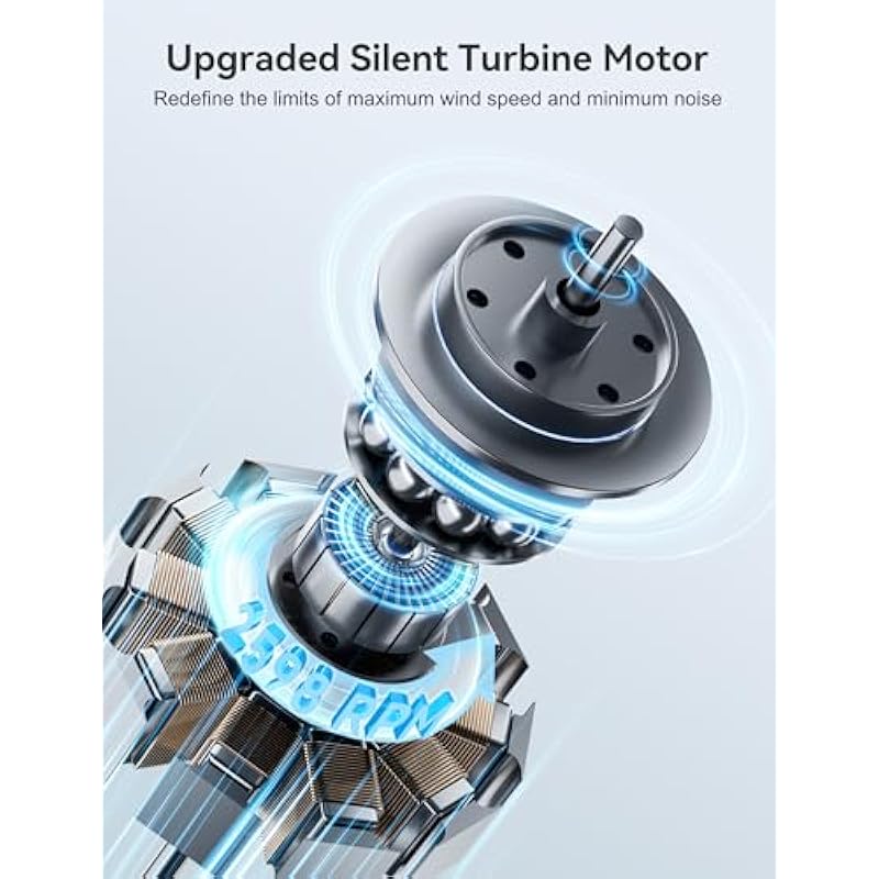 - 🏡 Compact & Portable Design:Standing at 13 inches tall with a 4.3-inch base, this small bladeless fan fits perfectly on desks, nightstands, and countertops. Its lightweight design makes it easy to move from room to room.