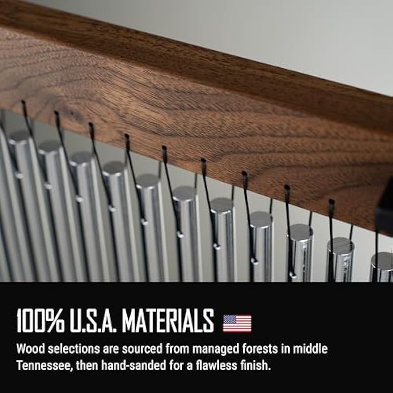| Material Type | Aluminum/titanium alloy bars, Tennessee black walnut mantle, TreeWorks CordLoc ties |