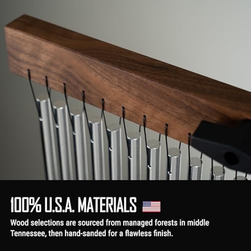 | Material Type | Aluminum/titanium alloy bars, Tennessee black walnut mantle, TreeWorks CordLoc ties |