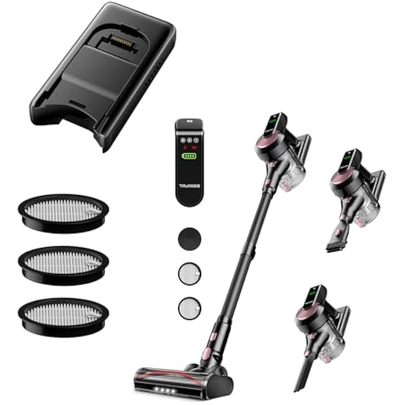 Trucozie Cordless Vacuum Cleaner T351 Black, Self-Standing Lightweight Stick Vacuum with 45mins Runtime, Battery Pack Bundle and 3 Pack Hepa Filter Bundle