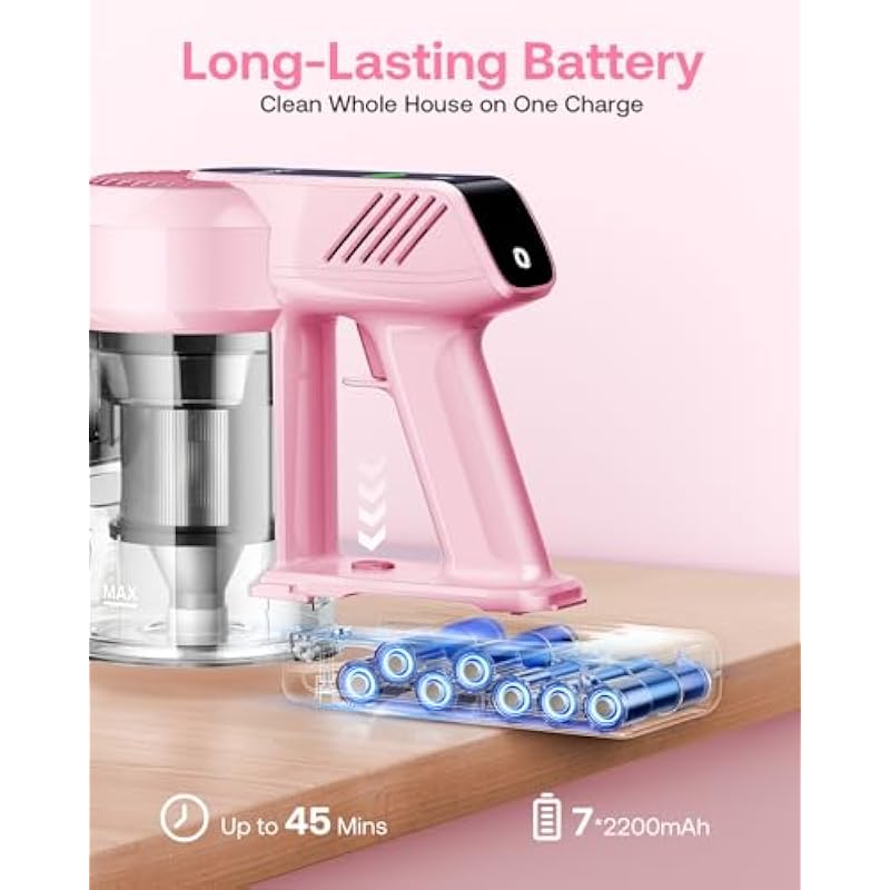 - 【Up To 45 Mins Of Runtime】Trucozie battery vacuum cleaner is equipped with a 7-cell battery pack. Its detachable design facilitates effortless replacement and charging. A single charge provides sufficient power for continuous whole-house cleaning. Easy for quick daily pick-ups or deep weekend cleans