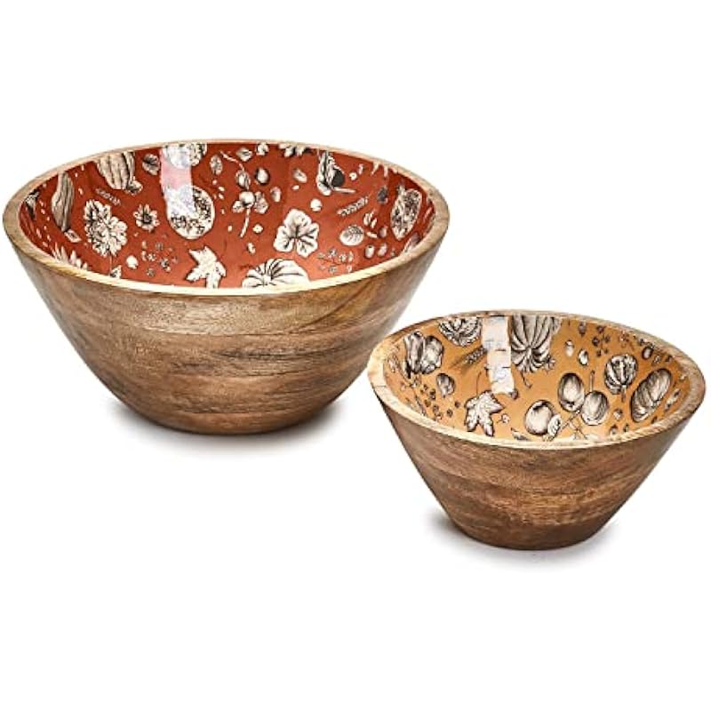 Two’s Company Autumn Soiree Hand-Crafted Set Of 2 Wooden Bowls w/Enamel in 2 Sizes