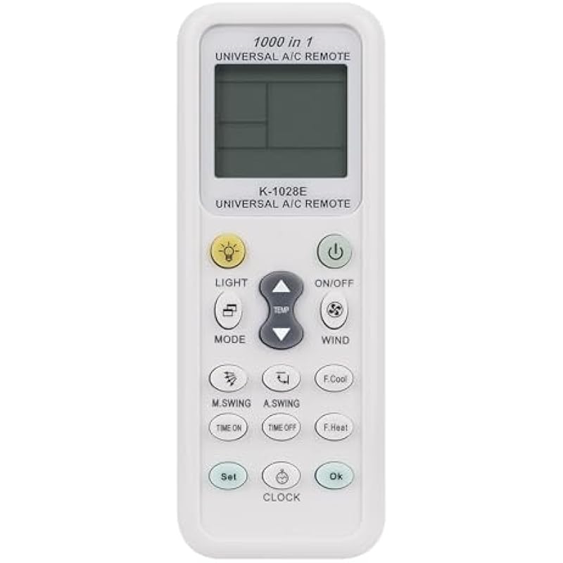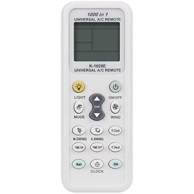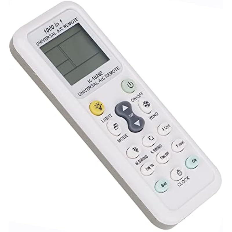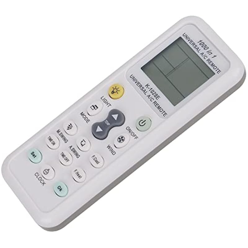 - The K-1028E A/C remote replacement has a quite large LCD display with backlight, a memory function that can store the settings and codes, a timer function, which can turn on or off the air conditioner at a preset time and also a lock function, which can prevent accidental changes of settings and codes