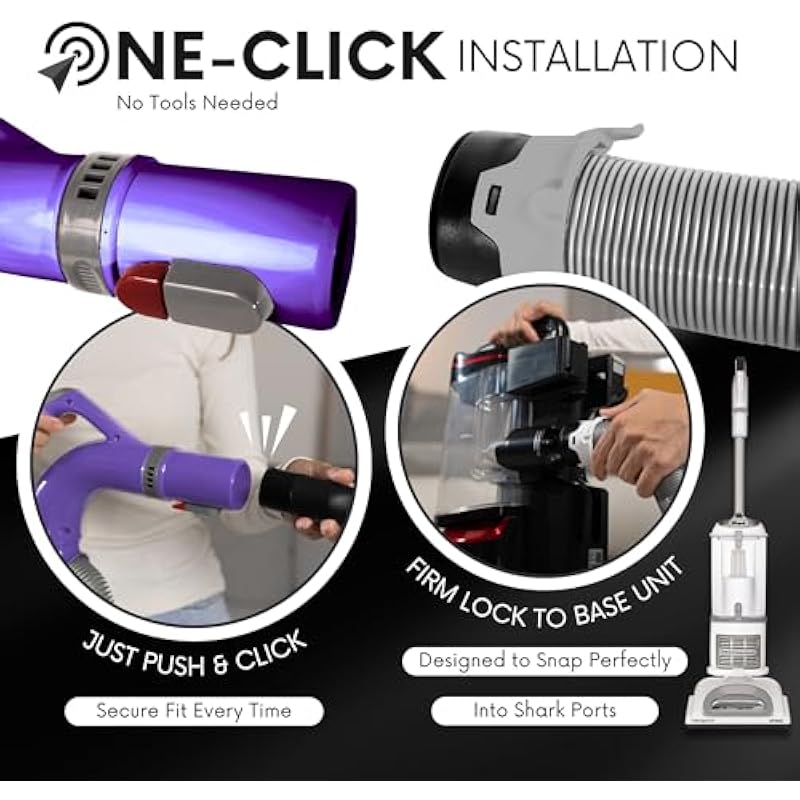 - PERFECT CLICK. Get you Shark Vacuum up and running again with Our deluxe replacement Hoses. These Selgo Vaccum attachments are Quick and easy to install without any extra tools parts or pieces, just a single click and its done!