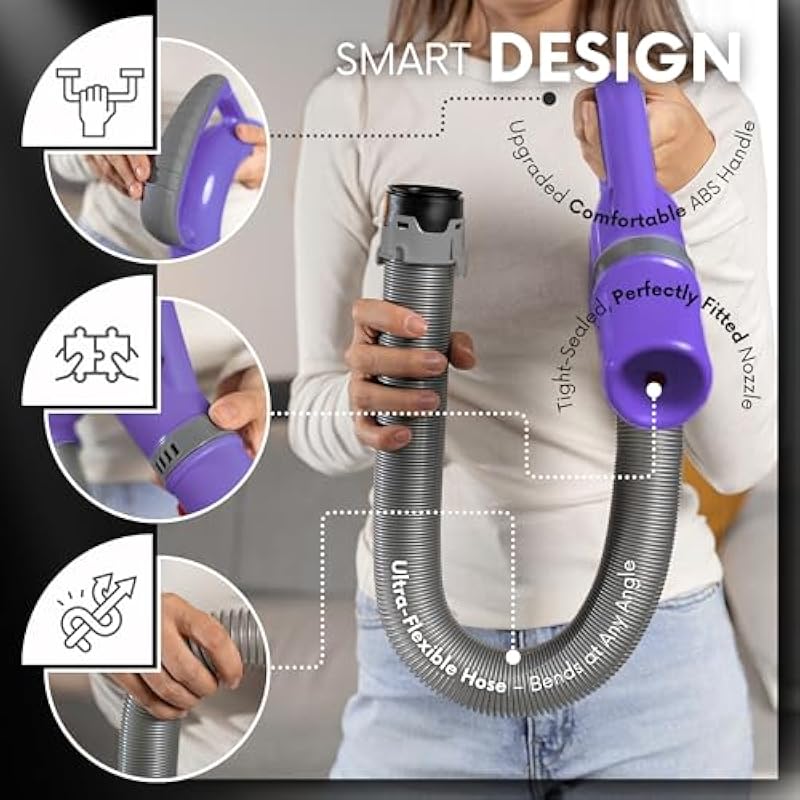 - TANGLE FREE. Our Vacuum Cleaner Hoses are super durable, thick & washable too! Made with high-quality PVC & steel wiring for improved toughness & flexibility so you can easily wind and swivel as you vacuum away. This Hose Extension is great for corners, hard to reach & small areas including sofas, beds, cabinets, woodworks, carpets & all types of floors.