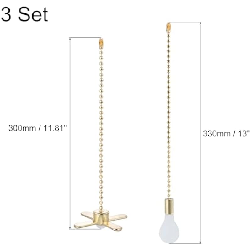 - Material: Alloy; Color: Gold; Fan Cord Length: 11.81 inch / 300mm; Bulb Length: 13 inch / 330mm; Package List: 6 Pcs x Ceiling Fan Pull Chain.