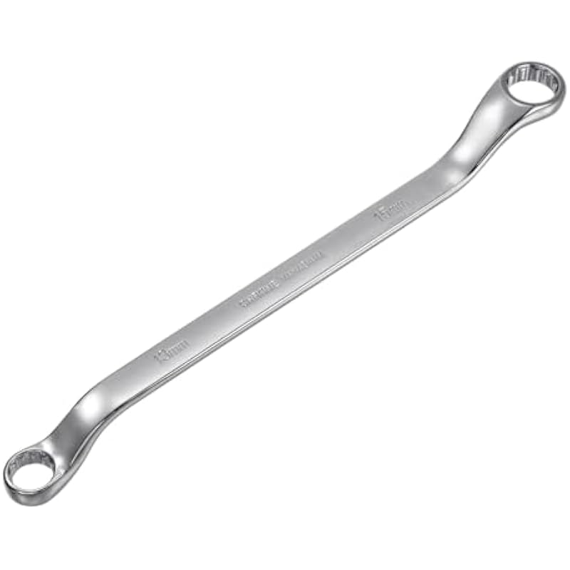 uxcell 13mm x 15mm Metric 12 Point Offset Double Box End Wrench Chrome Plated, Cr-V Steel