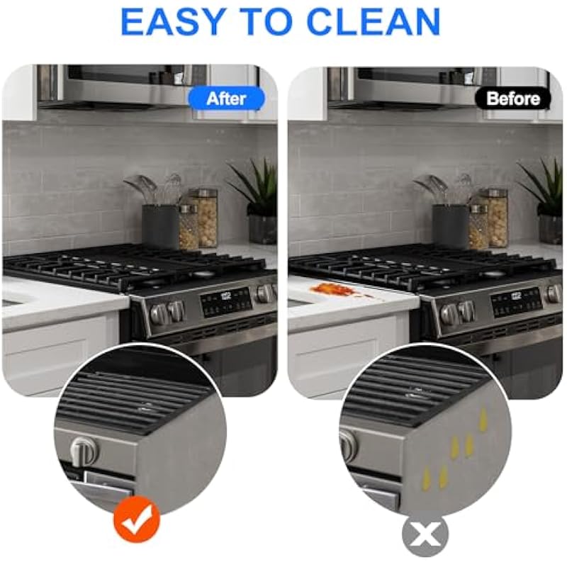 - Material: The stove gap covers are crafted from durable stainless steel, ensuring durability to withstand daily use and heat resistance. Unlike silicone stove caps that may deform, flame, or melt, our stove covers are reliable and long-lasting.