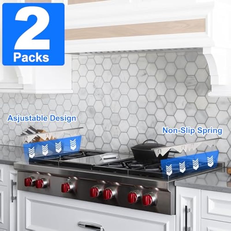 - Easy Retractable Length: Our stove gap filler design allows for flexible adjustment, with an adjustable length of 13.8 inches to 27.5 inches as needed to fit your stovetop gap. The 0.79 inch width fits gaps smaller than 18 mm and larger than 2 mm.