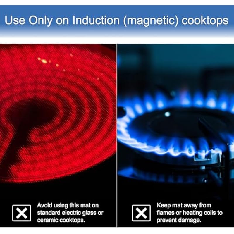 - CAUTION: These mats are not suitable for regular electric glass or ceramic cooktop; they are intended only for use on induction (magnetic) cooktop. Avoid exposing them to temperatures exceeding 450℉.