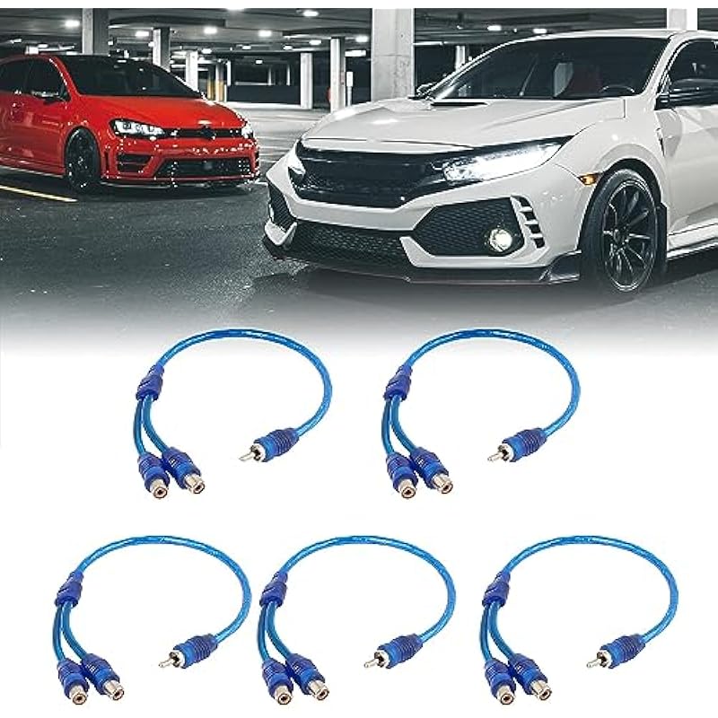 uxcell Car Audio 2 RCA Female to 1 RCA Male Jacks Adapter Y Splitter Cable Wire Connector 12″ Long 5 Pcs