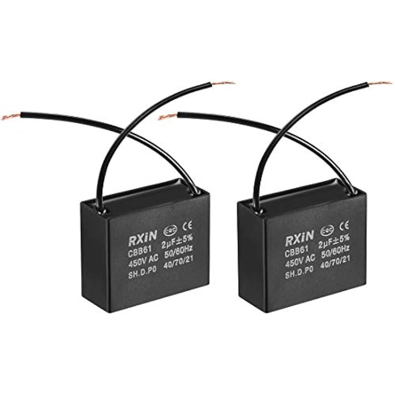 uxcell Ceiling Fan Capacitor CBB61 2uF 450V AC 2 Wires Metalized Polypropylene Film Capacitors 36.5x16x29.5mm for Water Pump Motor Generator, Pack of 2