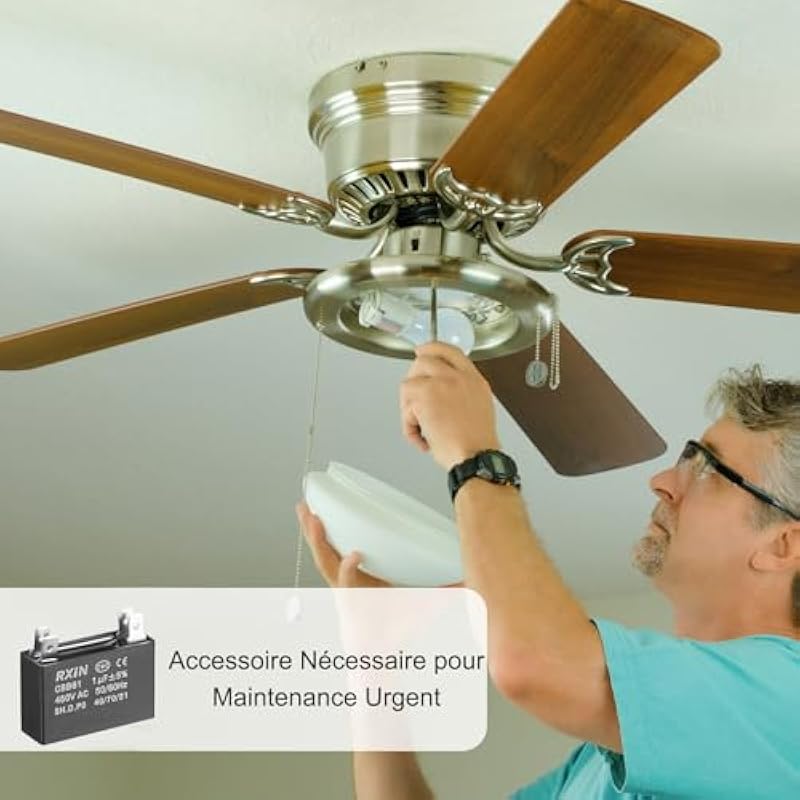 - [Note] – If the ceiling fan works slowing down or cannot work or cannot work at different speeds as it used to, please check the CBB61 ceiling fan capacitor first. The capacitor may be burnt out or weak, you need to replace it with a new one