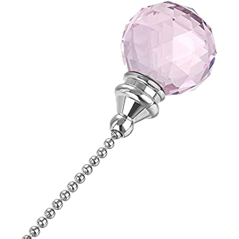uxcell Ceiling Fan Pull Chain, 20 Inch Nickel Finish Chain Ornament Extension, 30mm Pink Crystal Ball Pendant