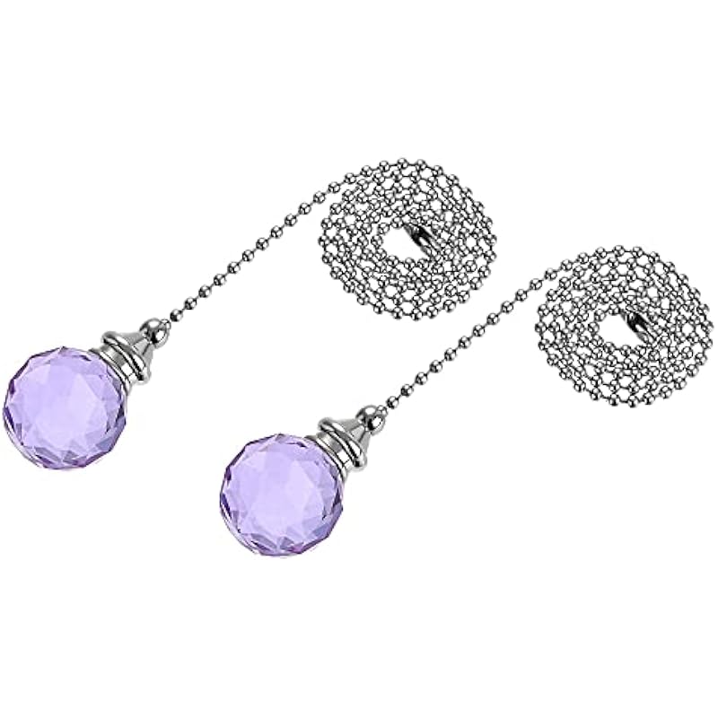 uxcell Ceiling Fan Pull Chain, 20 Inch Nickel Finish Chain Ornament Extension, 30mm Purple Crystal Ball Pendant 2Pcs