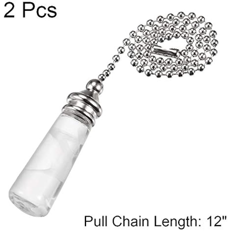 uxcell Clear Glass Pendant 12 Inch Brushed Nickel Beaded Pull Chain Extension Pulls Ornament for Lighting Fans Pack of 2