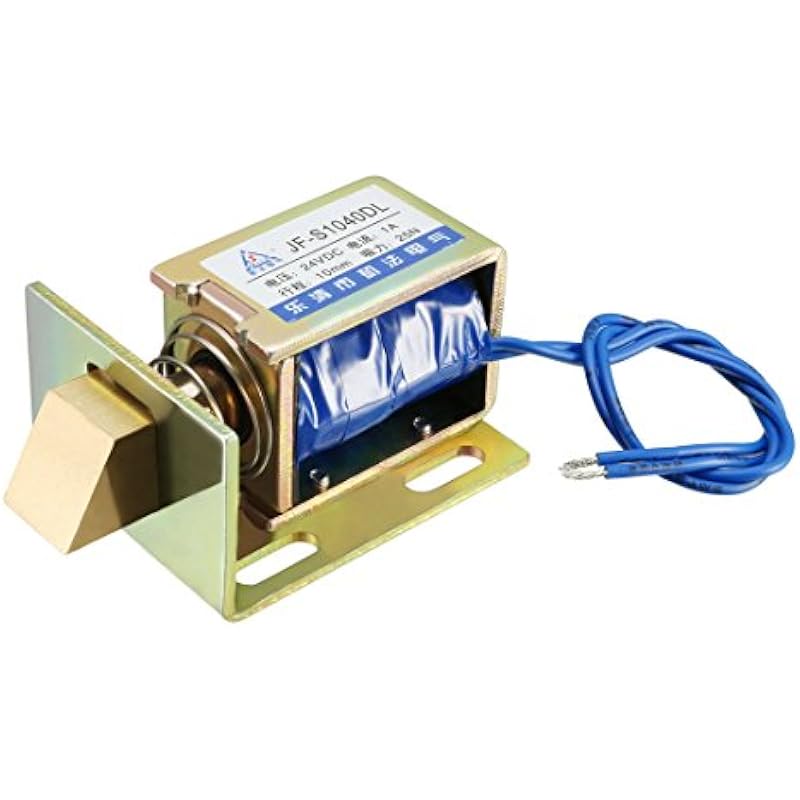 uxcell Eelectric Door Lock Solenoid,DC 24V 25N Force 10mm Stroke,Pull Type,Open Frame,Solenoid Electromagnet with Mount Board,Linear Motion,JF-S1040DL