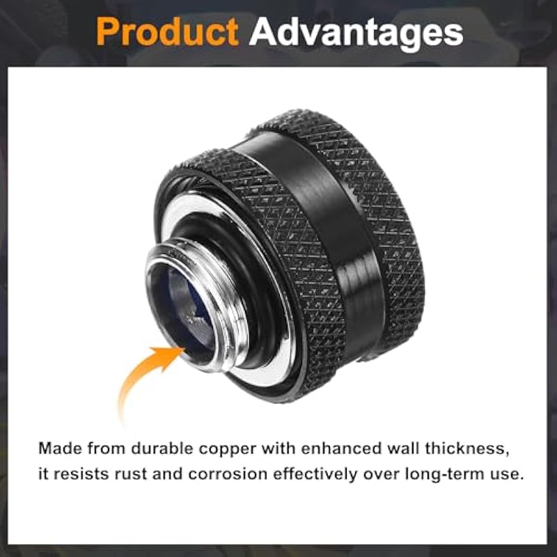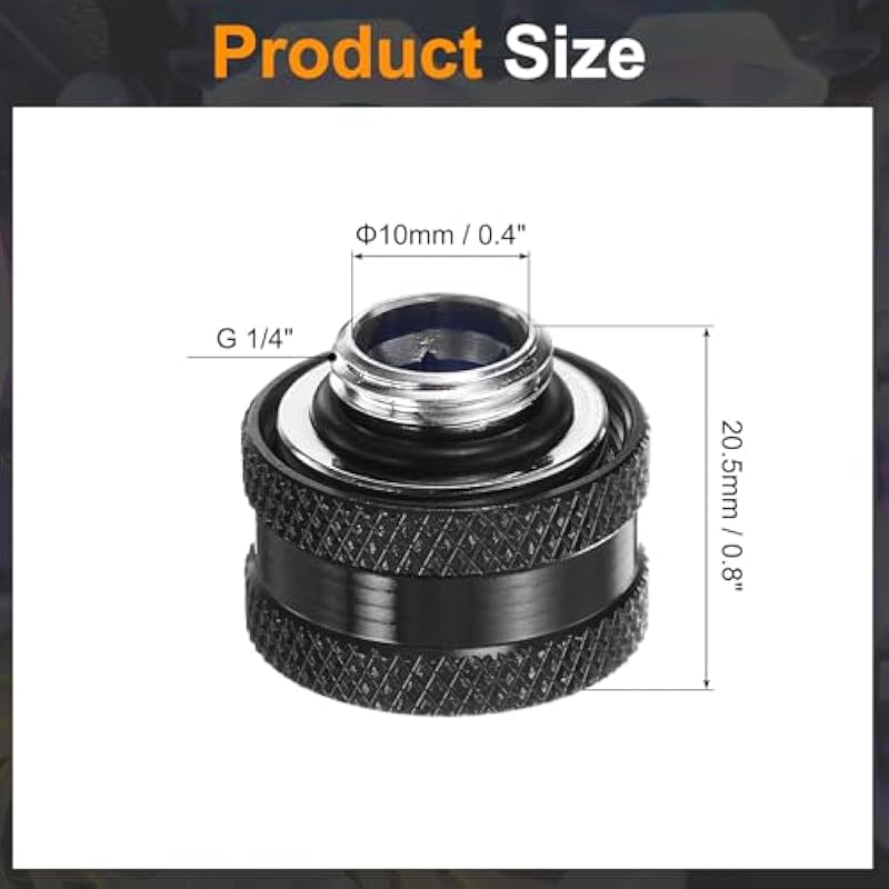 - Specification: This water cooling adapter features a precision-engineered design with a 0.4″ OD(10mm), G1/4″ thread, and a length of 0.8″ (20.5mm). The Black-blue finish adds a touch of style.